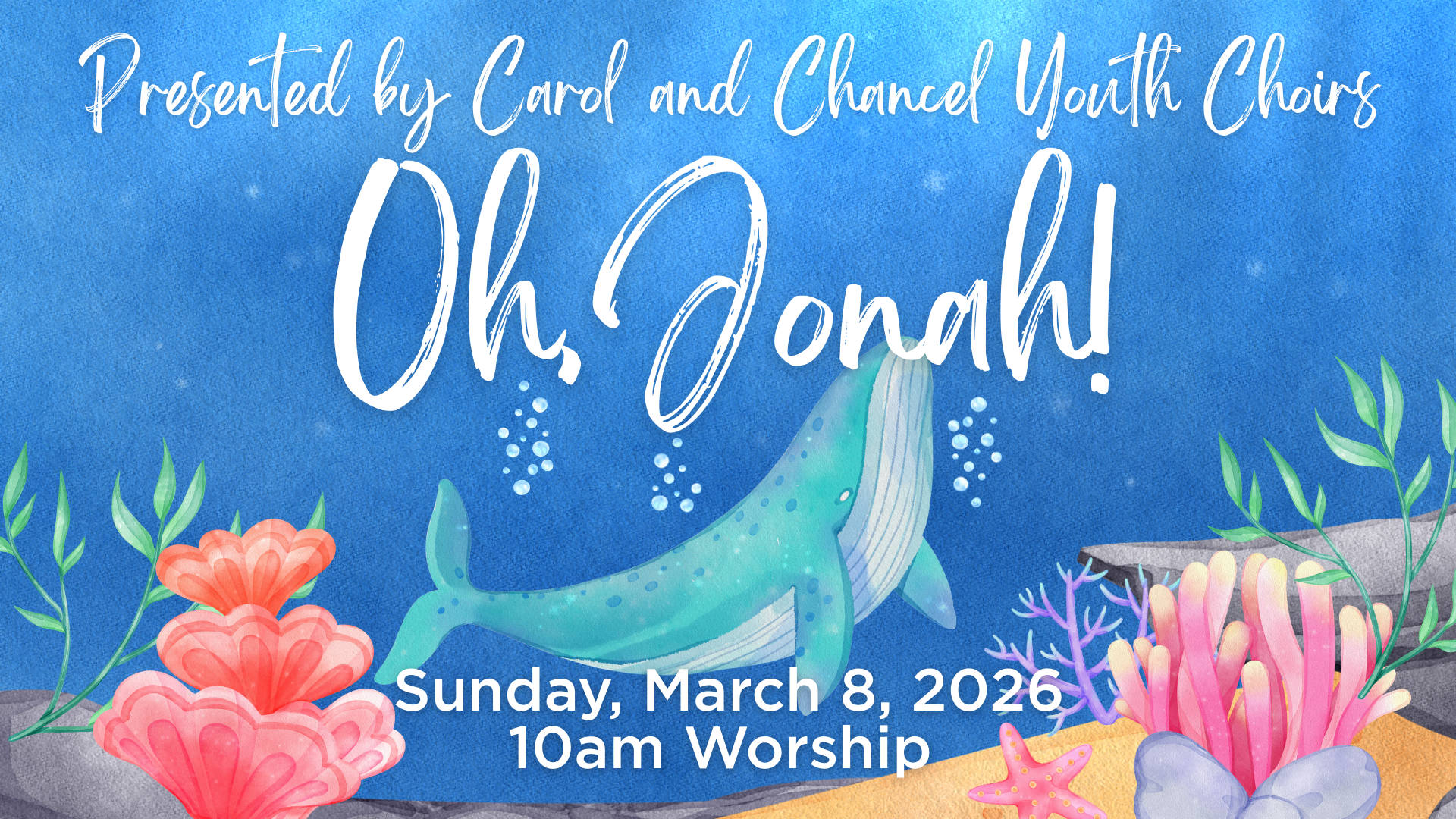 • Worship Service – 3/8/2026 at 10AM – Annual Spring Cantata – “Oh Jonah!”