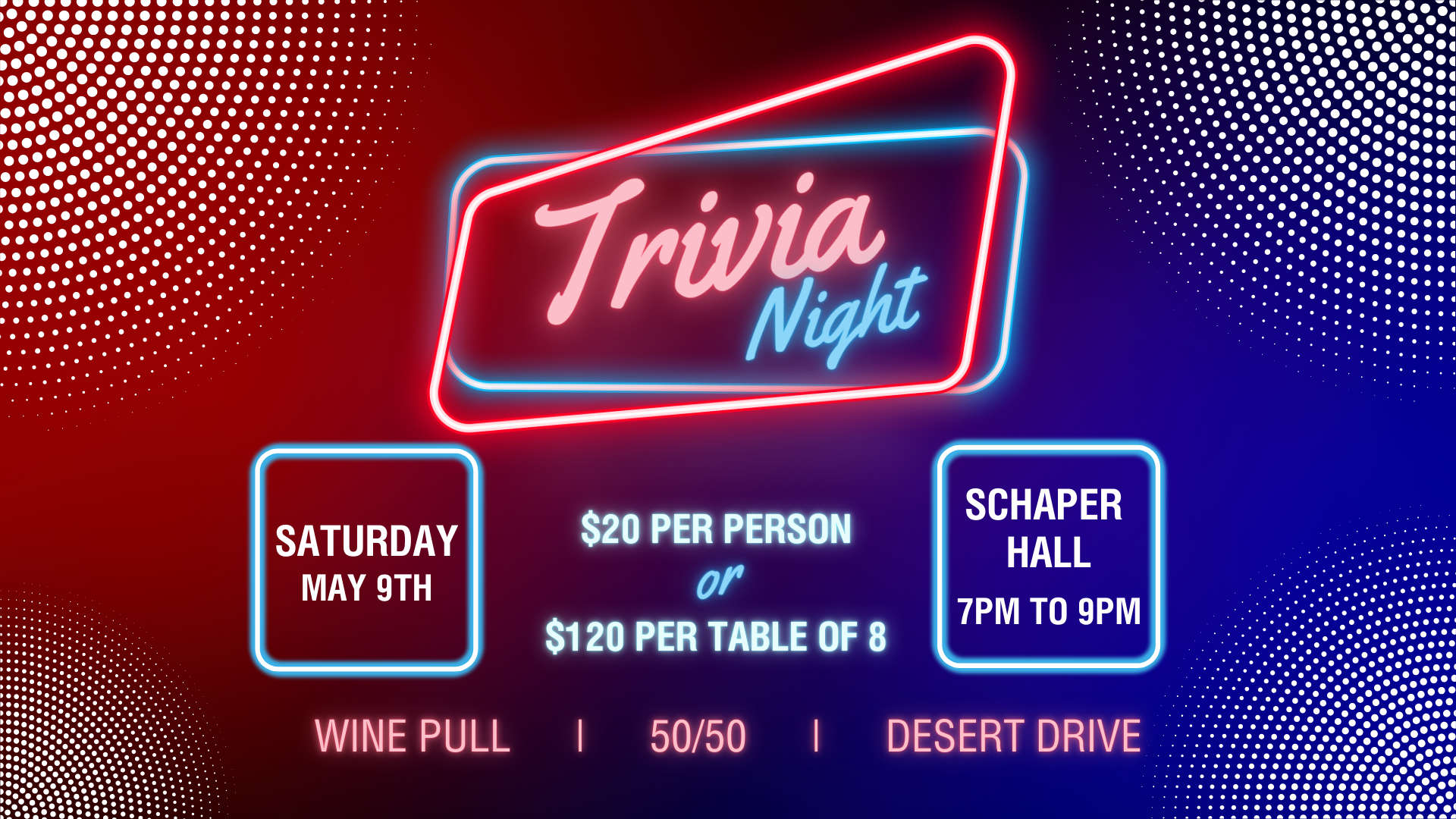 • Trivia Night – 5/9/2026 at 7pm